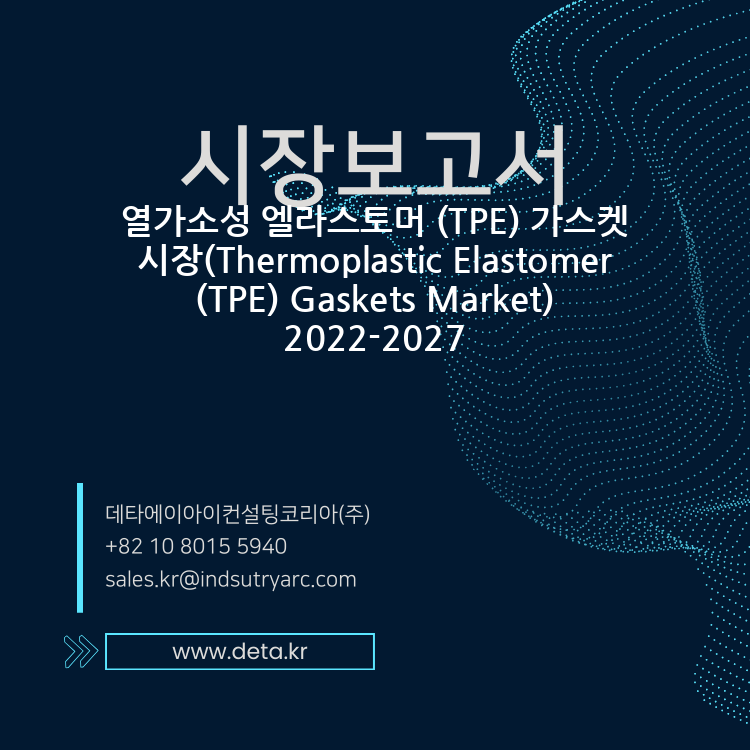 열가소성 엘라스토머 (TPE) 개스킷 시장. 열가소성 엘라스토머 (TPE) 개스킷 시장은 2022-2027 년 동안 CAGR 6.2%로 성장한 후 2027 년까지 360 억 달러에이를 것으로 예상됩니다. 자동차, 전자 제품 및 기타와 같은 다양한 최종 사용 산업에서 기계 작업이 증가함에 따라