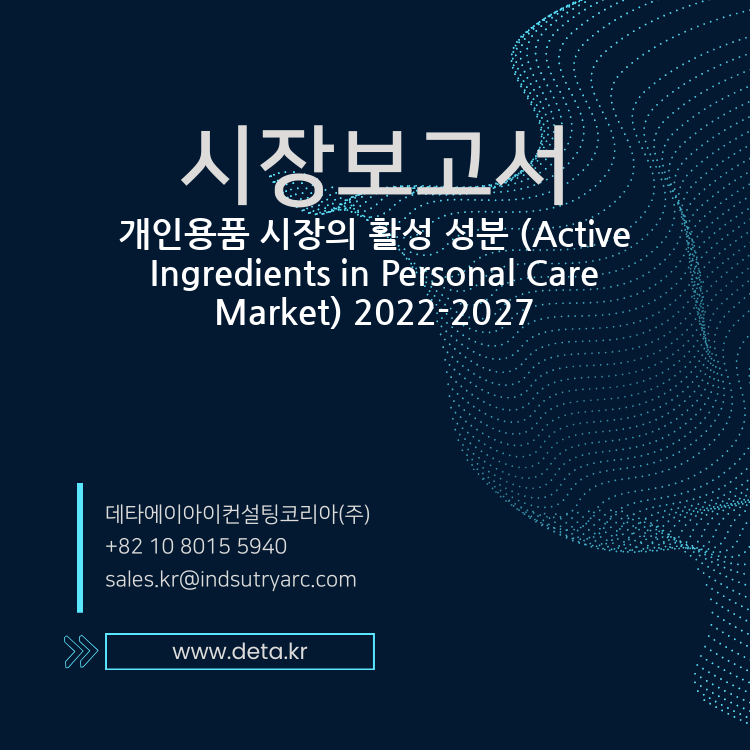 개인 관리 시장의 활성 성분. 개인 의료 시장의 글로벌 활성 성분은 2022-2027 년 동안 7%의 CAGR로 성장한 후 2027 년까지 약 70 억 달러에이를 것으로 예상됩니다. 활성 성분은 천연 또는 합성 물질 일 수있는 화학 제품의 구성 요소로 정의 될 수 있으며 최종 제품의 성능 목표를 직접 달성하는 데 도움이됩니다